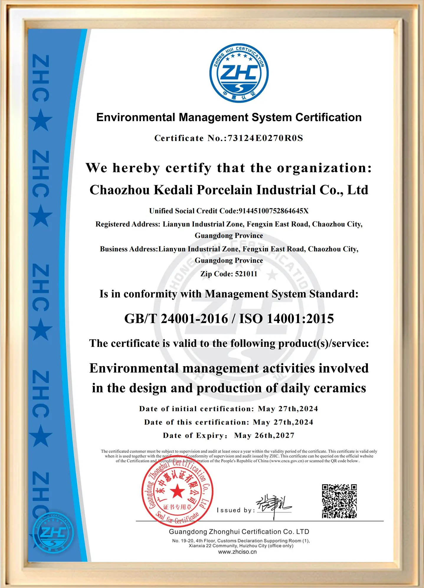 Our strict quality control ensures the consistency and reliability of each batch of ceramics. Qualify with ISO 9001, ISO 14001 and OHSMS, dedicate to enhancing customer satisfaction and market competitiveness.