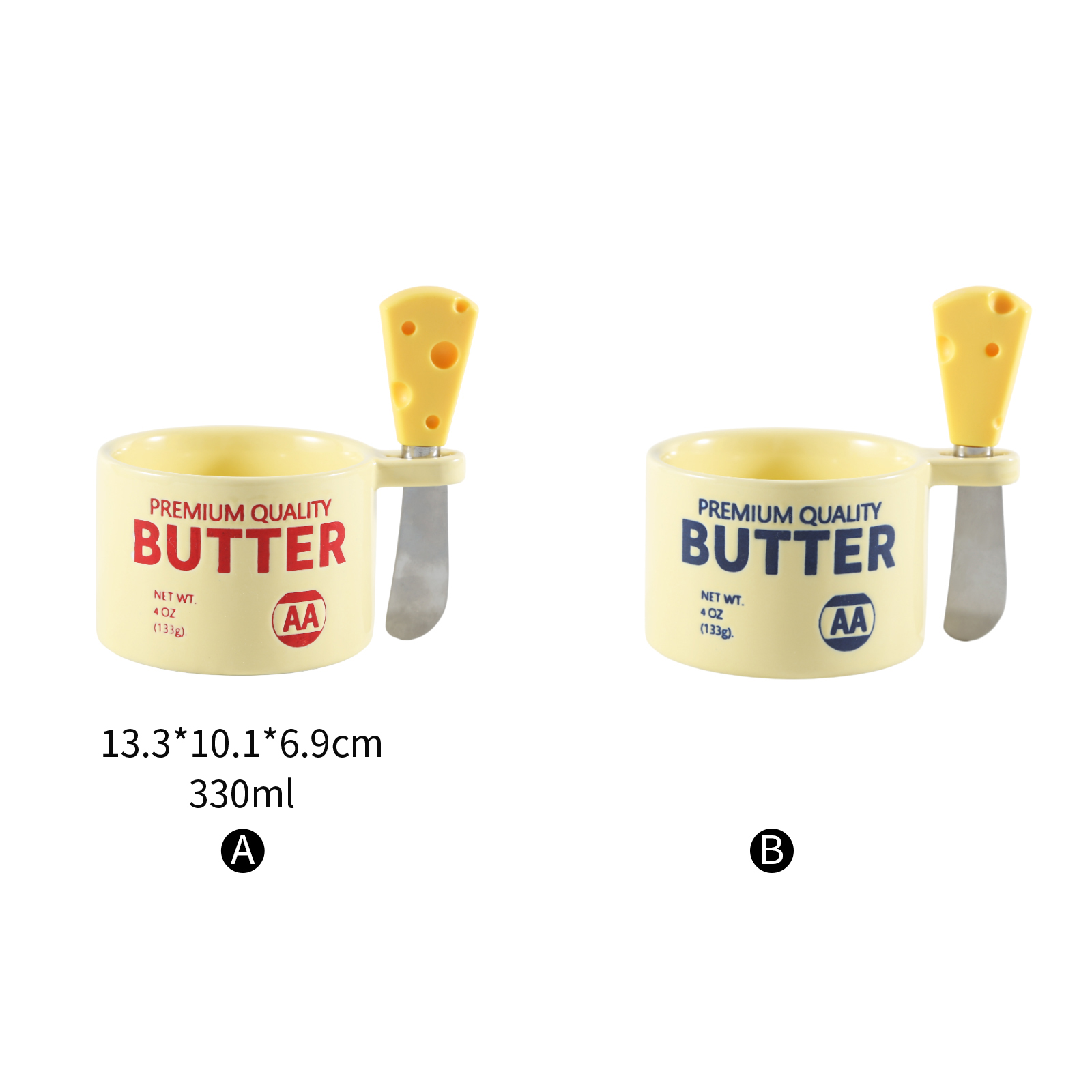 Wholesale ceramic butter container set. This elegant, all-in-one serving solution includes a ceramic butter container and a matching butter knife, thoughtfully designed for cafés, restaurants, hotels, and home kitchens. Featuring a charming retro aesthetic and a playful “Swiss Cheese” handle, this set enhances user experience while adding a high perceived value for retail or hospitality settings.