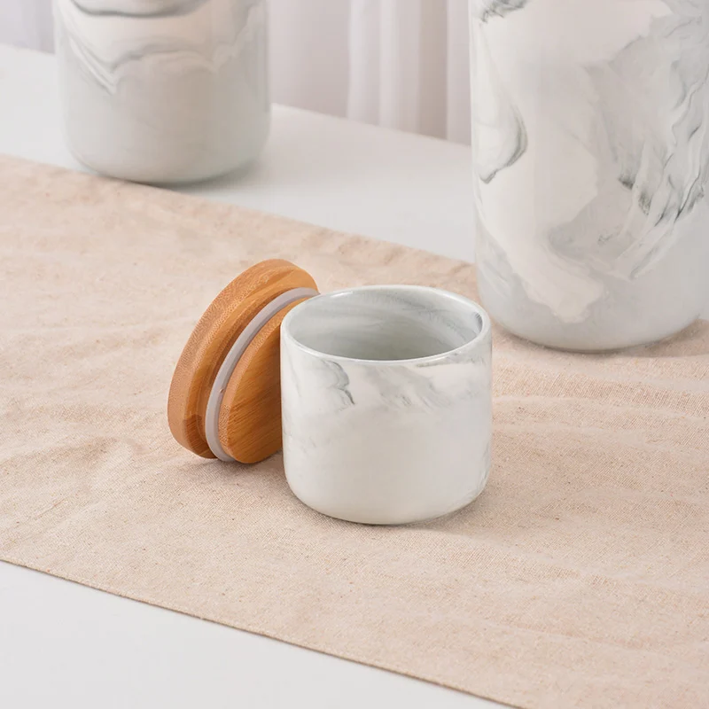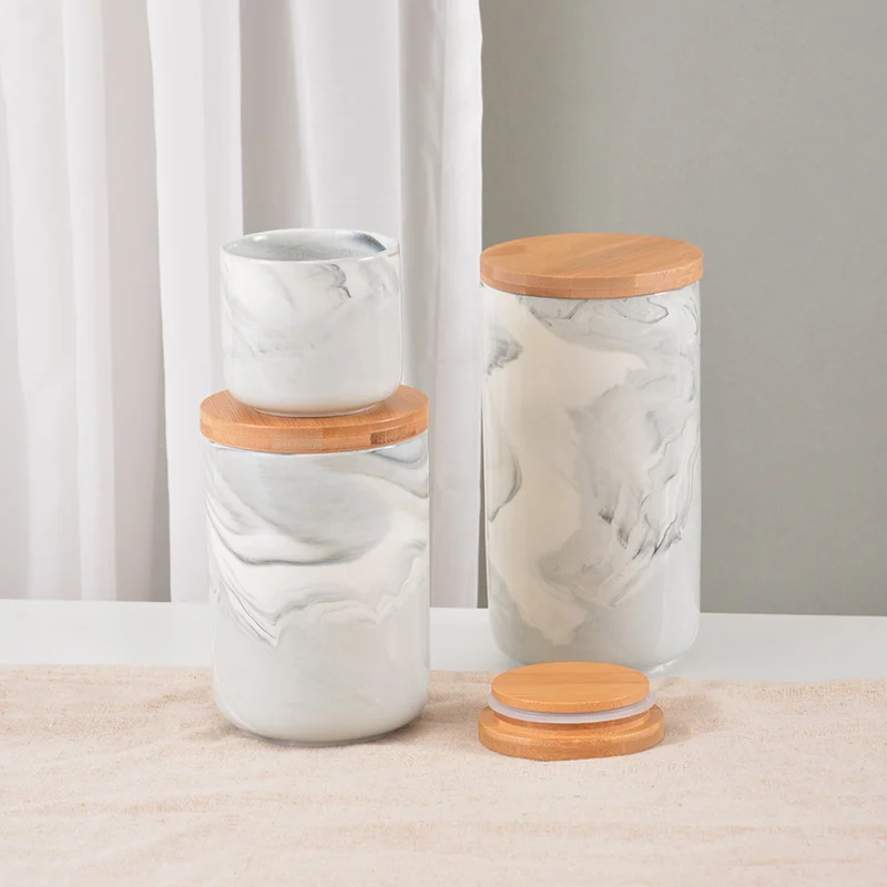 - Enhancing Home Aesthetics: The ceramic jar paired with a wooden lid creates a natural and harmonious visual effect, enhancing the overall aesthetic. The marble-like texture design brings a touch of luxury, elevating the style of your home.