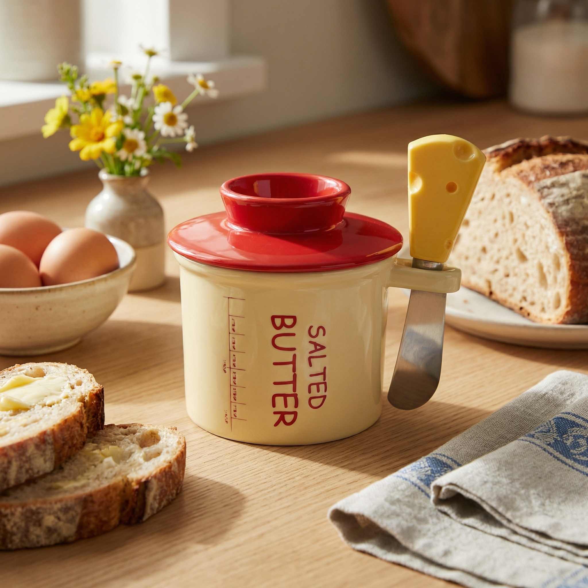 - Cute & Playful Design: Our wholesale butter crock set features an adorable design and comes with a cheese-themed butter knife, appealing to users of all ages and enhancing the aesthetics of the dining table.