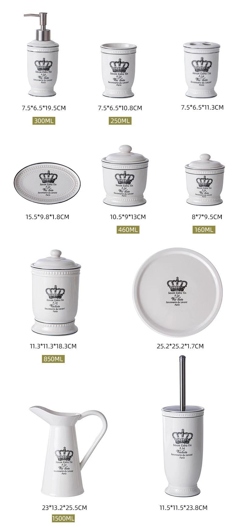 - High Quality: Our bathroom accessory set is made from high-quality ceramic, fired at high temperatures, and finished with a smooth glaze. The surface is easy to clean, stain-resistant, and maintains its shine over time.