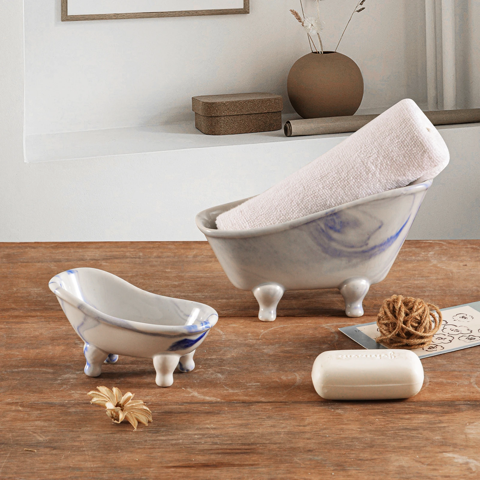 Wholesale Blue-patterned Ceramic Soap Dish Storage Set – Bathtub Design