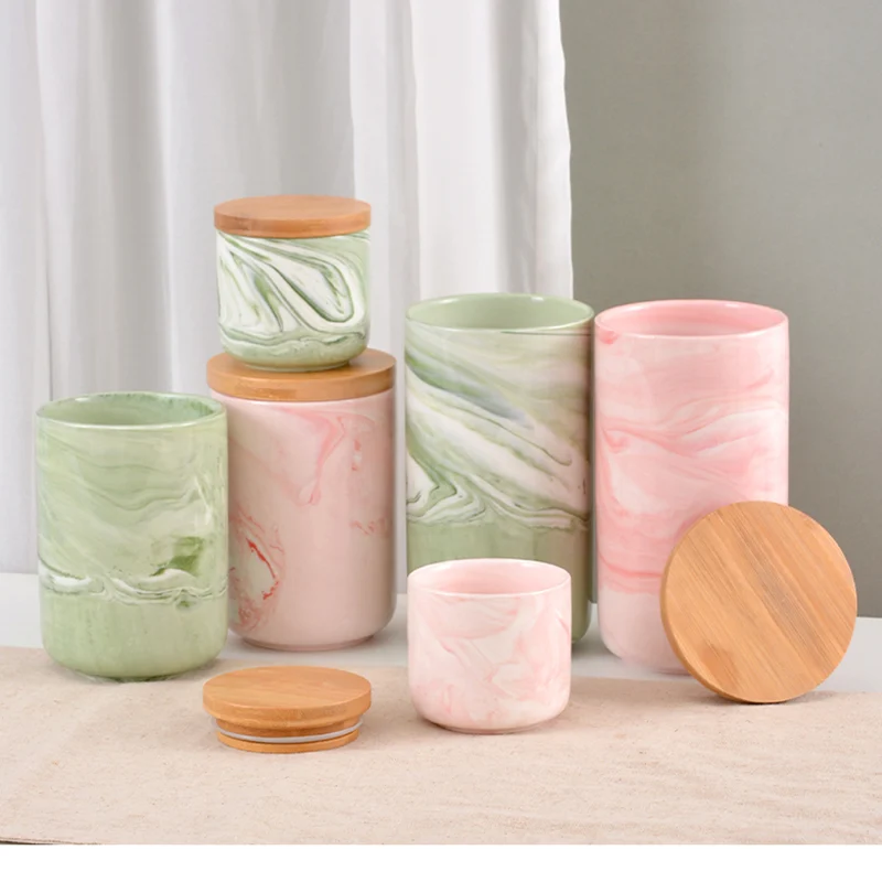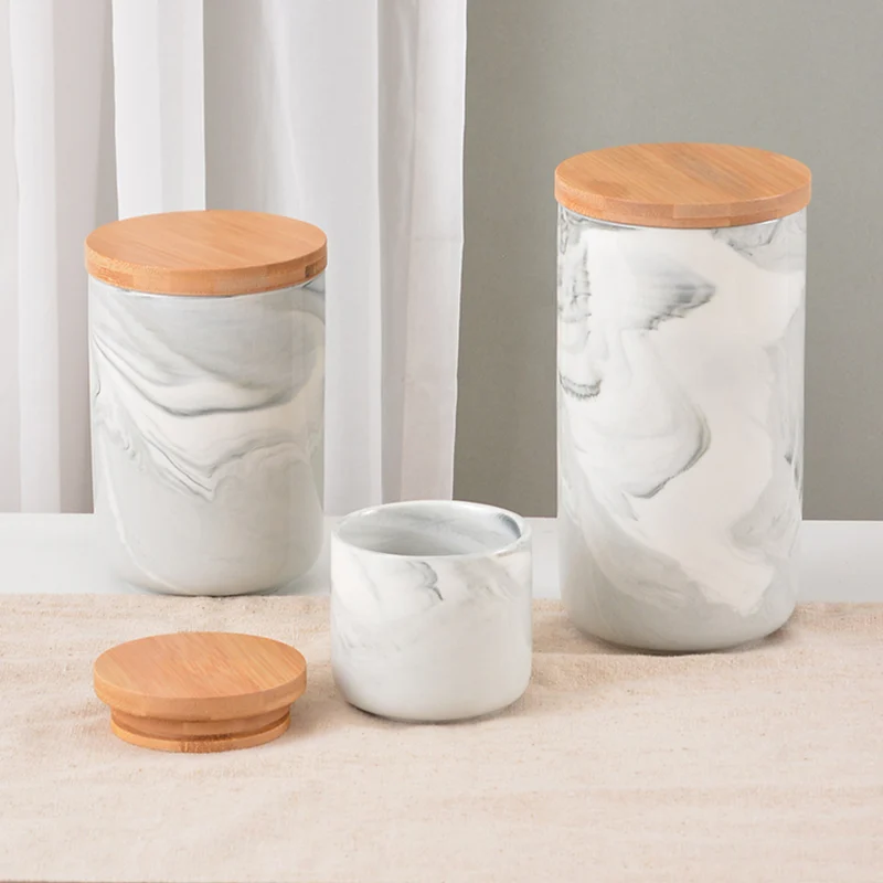 Wholesale Ceramic Marble-Effect Storage Canister Set with Bamboo Lids