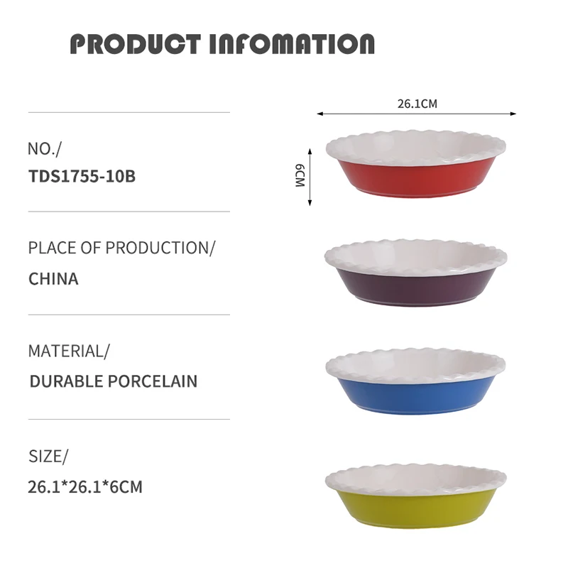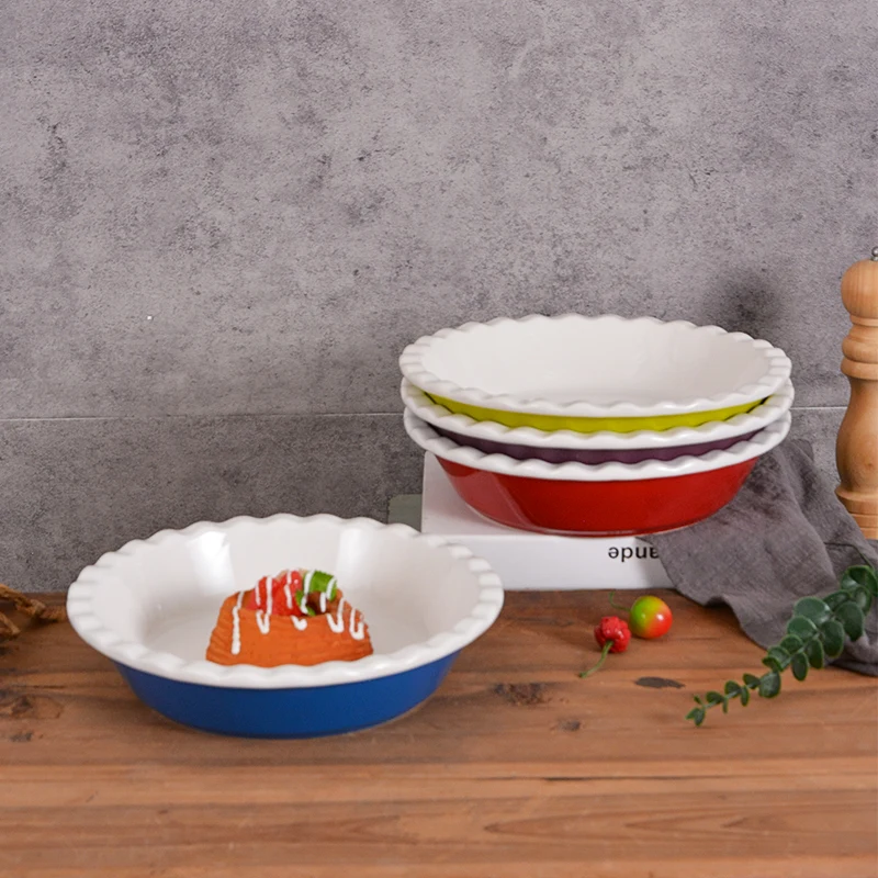 - Multiple Color Options: The wholesale ceramic pie pan is available in a variety of colors, including blue, red, purple, and green, and allows for flexible customization to suit different brand styles and market preferences.