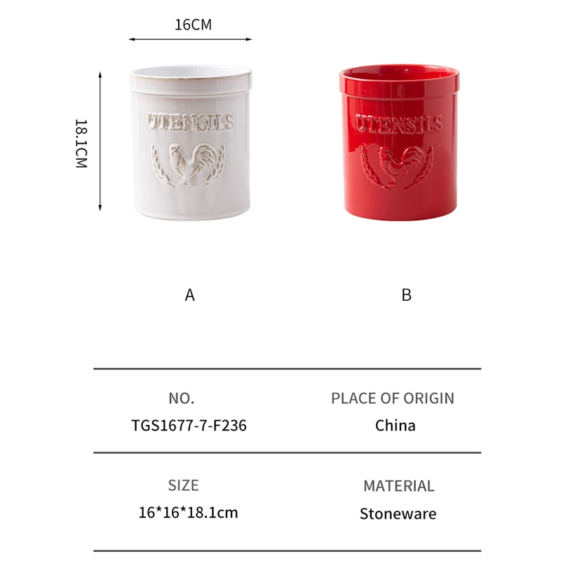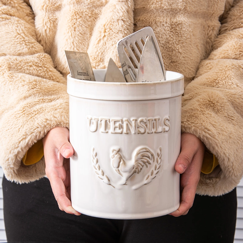 Wholesale Ceramic Utensil Holder with Embossed Rooster Design – Ceramic Utensil Holder Manufacturer