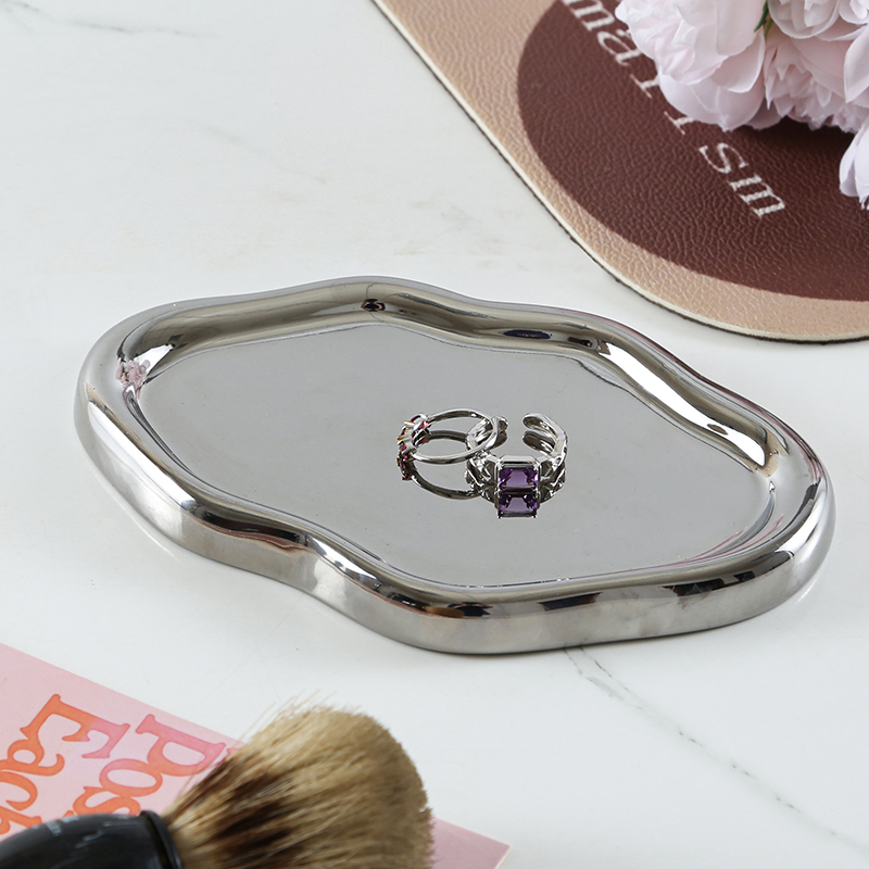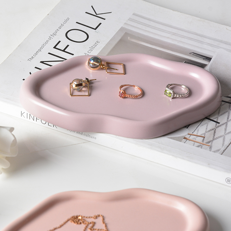 Wholesale artistic ceramic trinket trays. These ceramic jewelry trays come in a variety of vibrant colors and creative shapes, featuring a modern wave design and a durable finish that is both luxurious and scratch-resistant for delicate jewelry. Their raised edges are carefully designed to effectively hold rings, earrings, and necklaces, making them suitable for bedside tables and dressing tables.