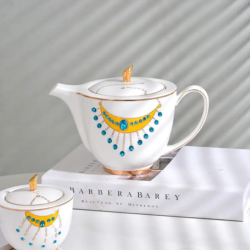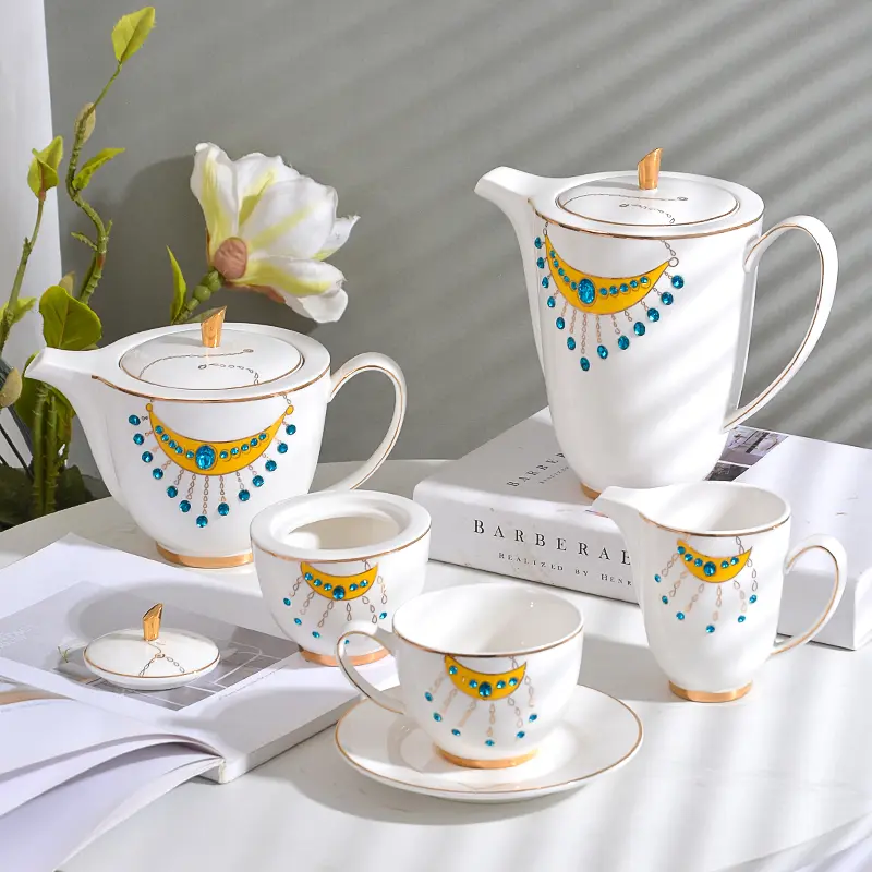 Wholesale Luxury Ceramic Tea Set with Jeweled Crescent Motif