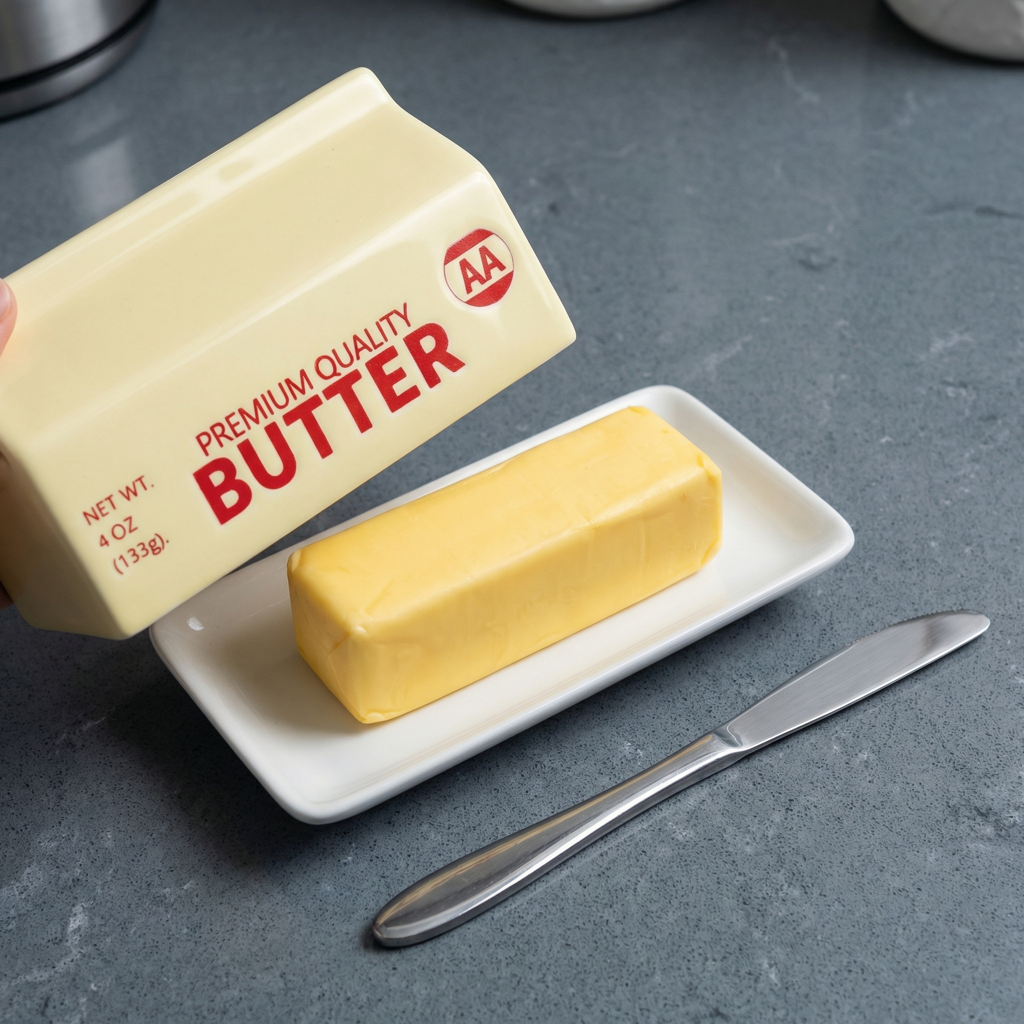 - High Perceived Value: A playful and unique cardboard-inspired design sets your product apart from ordinary butter dishes, creating a premium look and increasing retail value.
