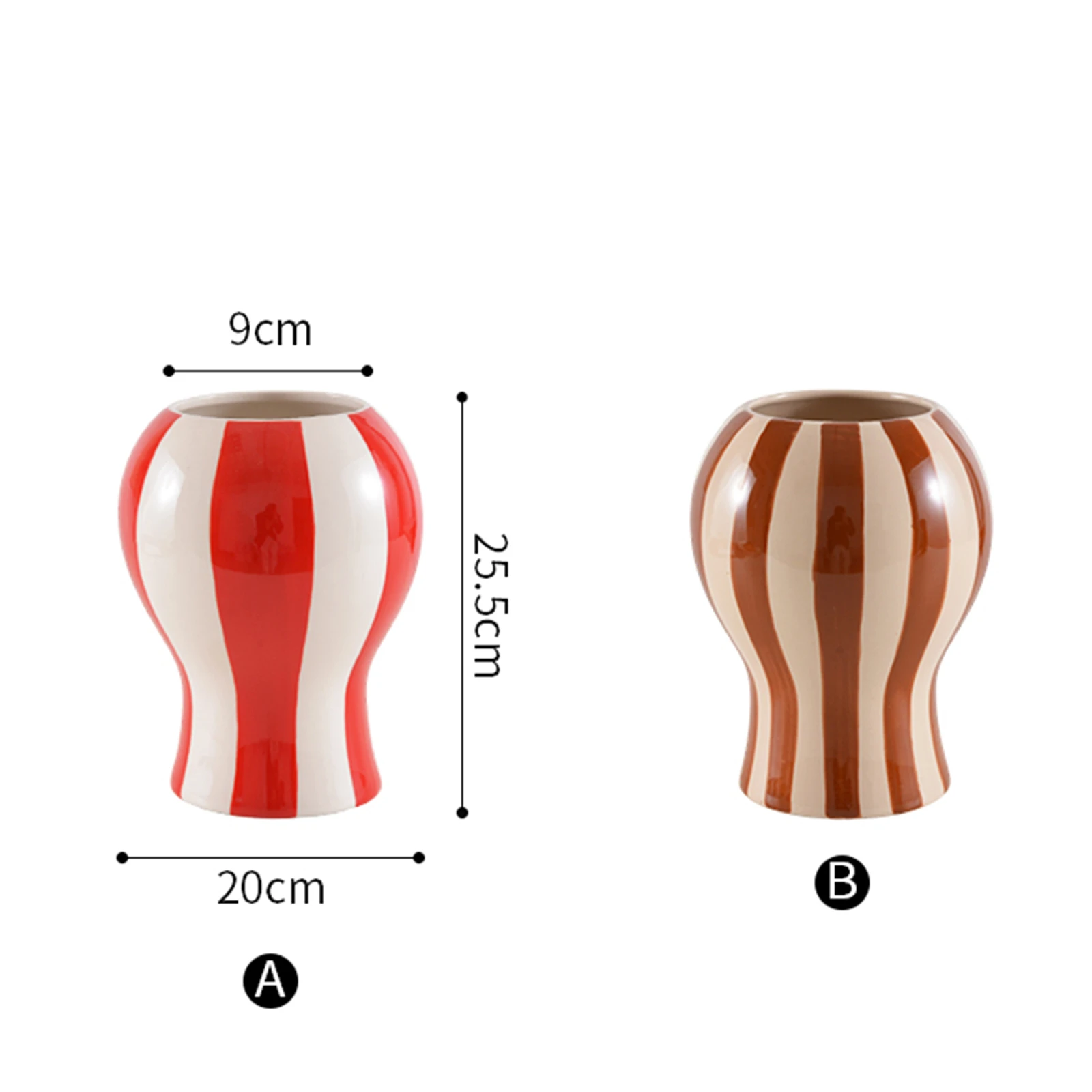 Wholesale Striped home decor ceramic vase. These vases feature a unique, bulbous “balloon” silhouette that tapers into a sturdy base, offering a playful yet sophisticated profile that stands out in any retail display or showroom. They are perfect for home and hotel décor. Contact us today to get the best wholesale pricing.