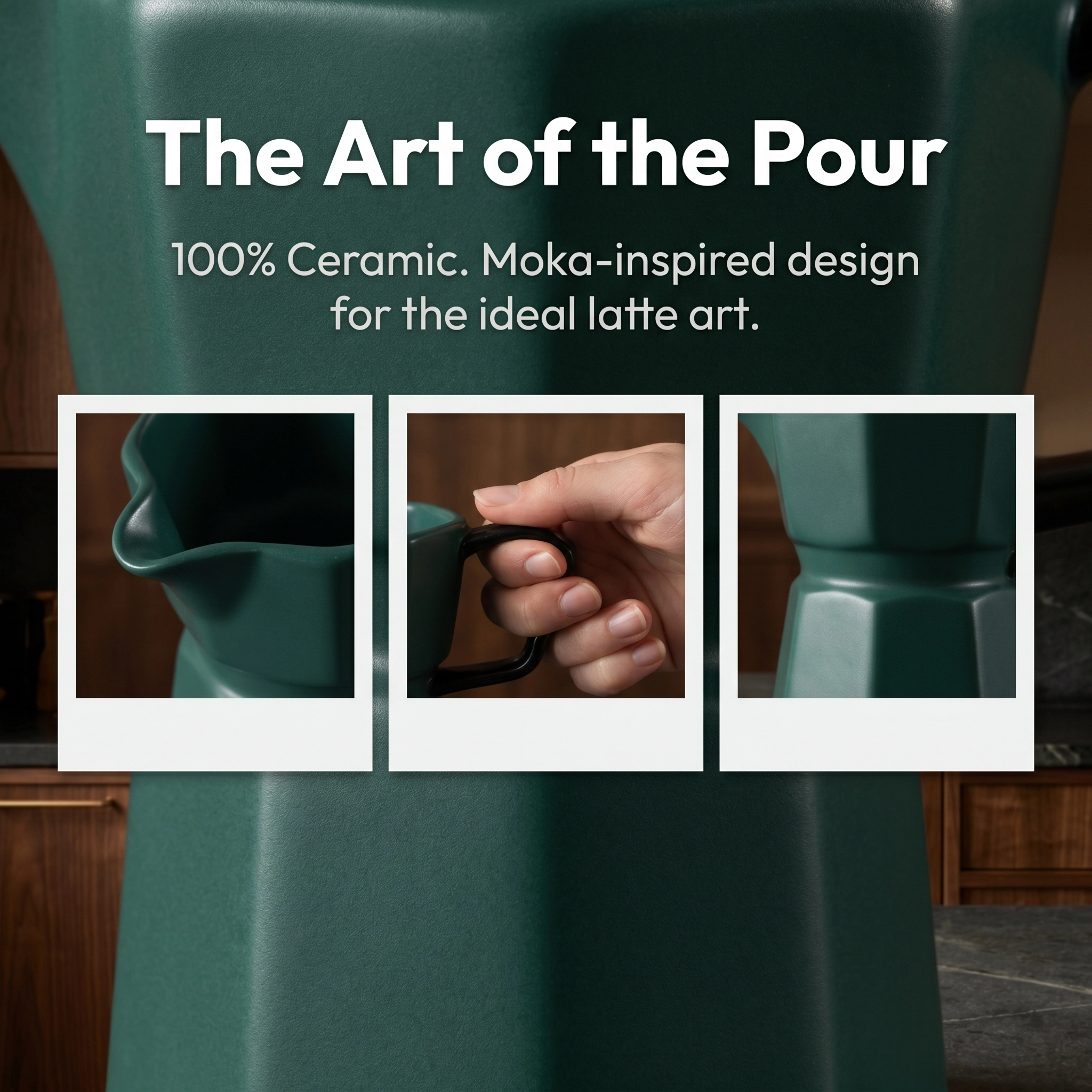 - Optimized Ergonomics: Designed with a sturdy handle and a precision-engineered spout, the pitcher ensures a controlled, spill-free pour, enhancing the user experience during coffee service.