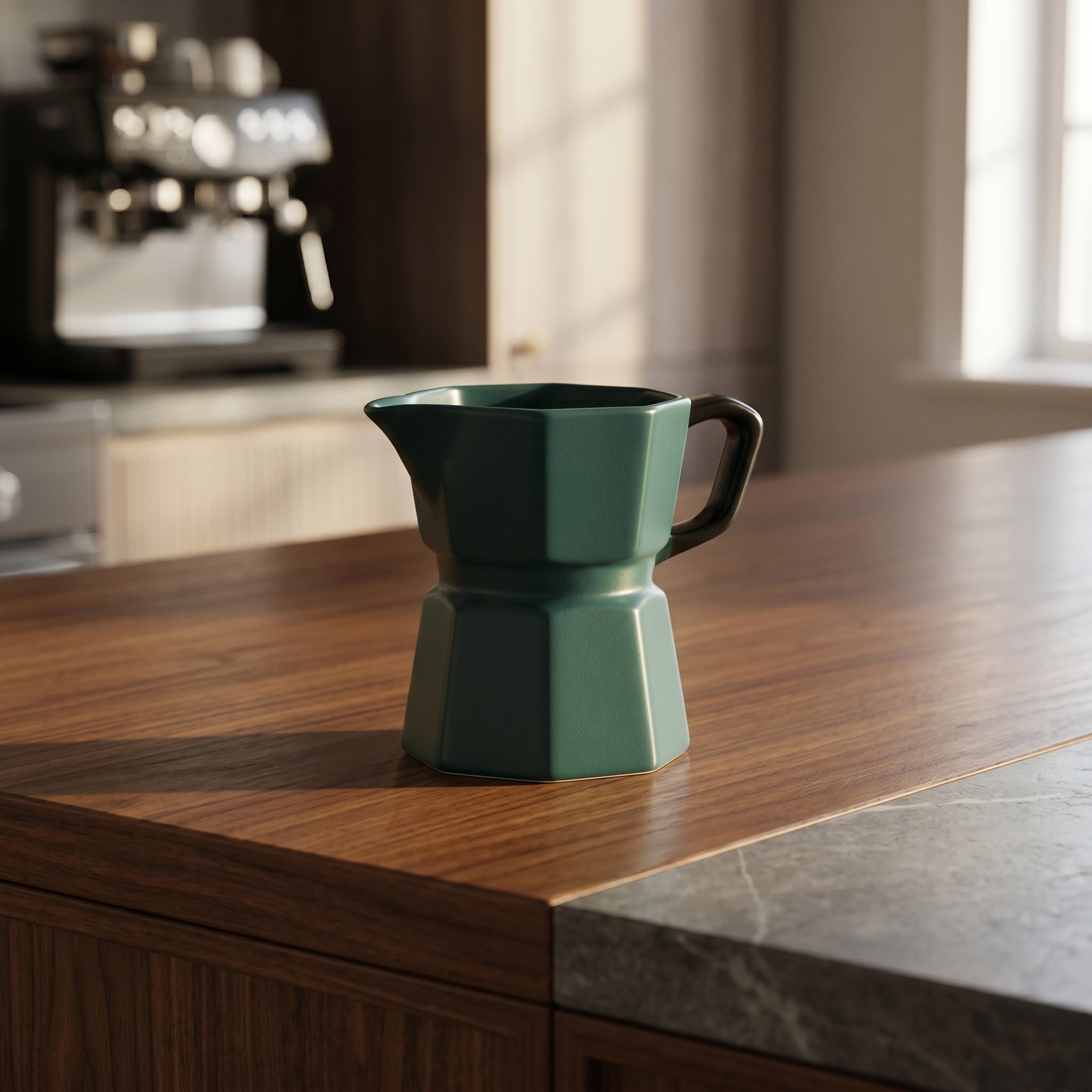 - Unique Geometric Design: Inspired by the classic moka pot shape, its clean, powerful lines create a distinctive and eye-catching appearance. It adds a touch of sophistication to coffee shops, combining practicality and aesthetics.