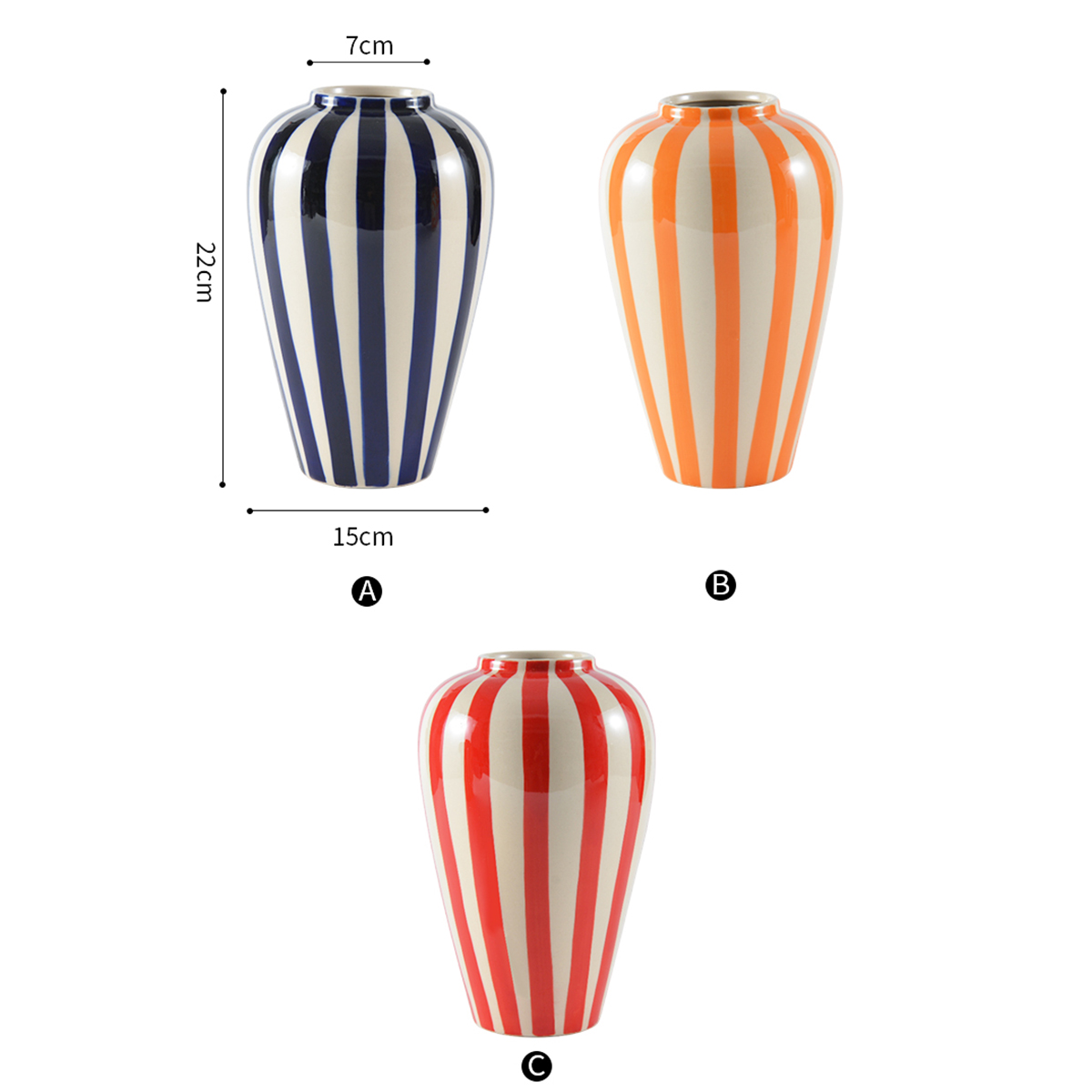 - Modern Aesthetic Appeal: The bold vertical striped design provides a striking visual contrast that captures attention, making these vases highly desirable for retailers focusing on modern, chic, and minimalist home decor markets.